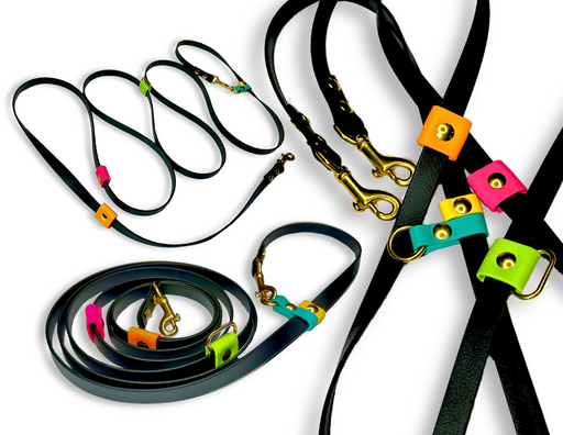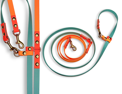 BioThane® is a waterproof, odor-proof, and highly durable American-made material that resists wear and tear. Paired with timeless solid brass hardware, our leashes are built to last and easy to clean, making them ideal for any outdoor activity or adventure.
