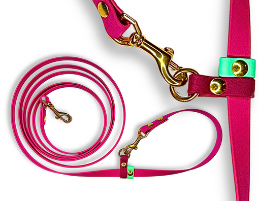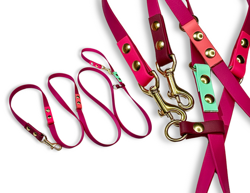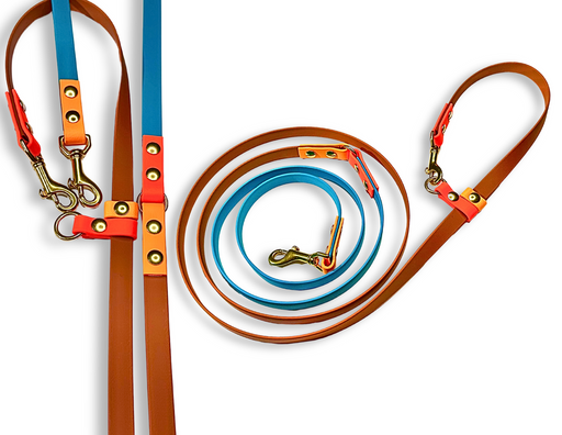BioThane® is a waterproof, odor-proof, and highly durable American-made material that resists wear and tear. Paired with timeless solid brass hardware, our leashes are built to last and easy to clean, making them ideal for any outdoor activity or adventure.